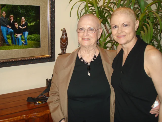 It wasn't dawning on me yet as to why she did it. She smiled and eventually said, “Janet, I can’t take this journey away from you, but I can walk it with you.” I knew in that moment how hard it had been to watch her daughter suffer. My mom had a very good friend whose daughter had died from breast cancer. It must have all hit too close to home. I thought of my mom’s friend the day I picked up the phone to tell my mom I had cancer too. I kept saying, “I have something to tell you and I want you to know I am ok with it. I am good.” Of course, I wasn’t good with it, but I had to help her handle the information. As a worrier myself, the fruit doesn’t fall far from the tree. She was comforted to hear we had caught it early. She would later tell me she fell apart after we hung up, but there she was standing in front of me with a bald head and a big smile. We hugged and I was touched by her unbelievable gesture. I finally got it.